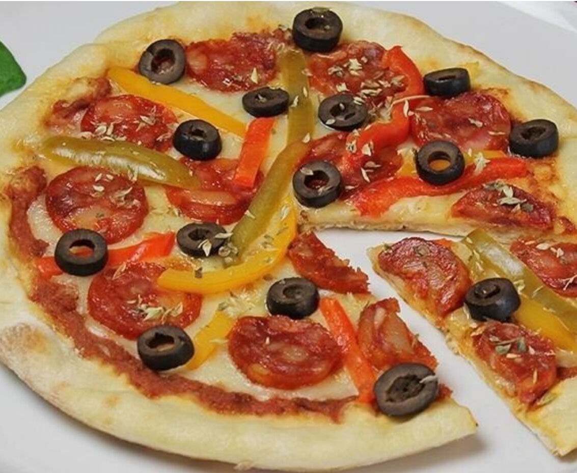 Pode optar por pasta, pizza ou salada.